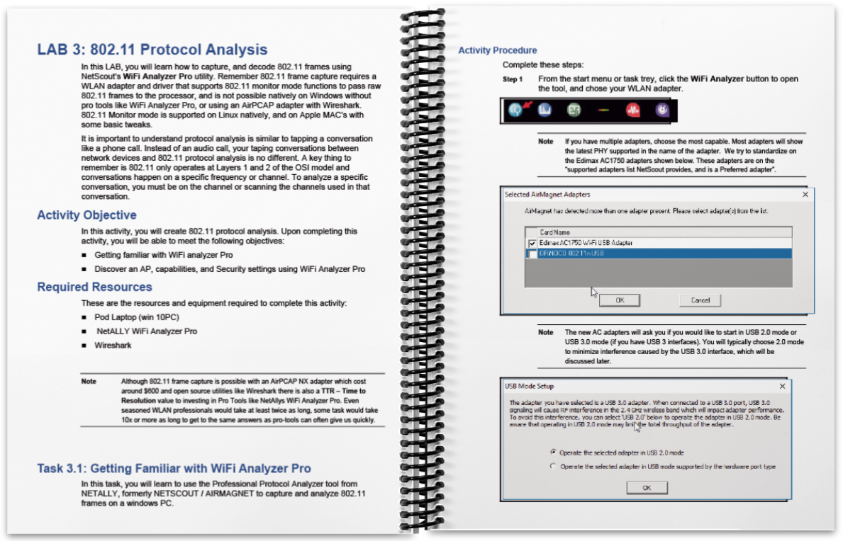 “Students can now get vital hand’s on experience with a variety of vendor software/hardware solutions, reinforcing the theory and knowledge learned in a CWNA or Wireless Fundamentals course. Our mission with this workbook series is to create a more well-rounded and confident WLAN Engineer by giving them real-world assignments, and hand’s on access to a suite of the latest WLAN tools and equipment to begin building that critical experience” – Say’s Chris Avants, Principal Instructor @ WiFi Training.